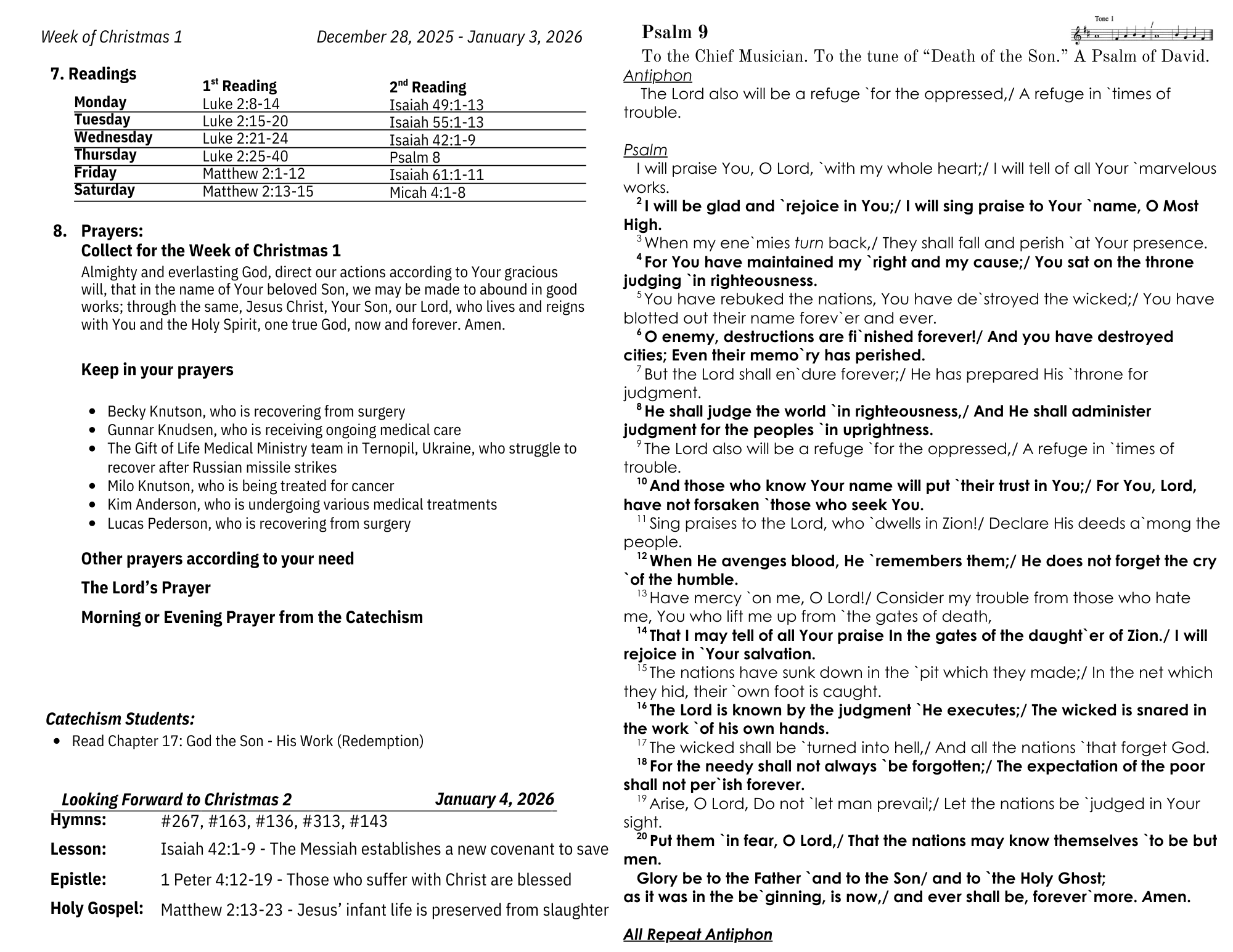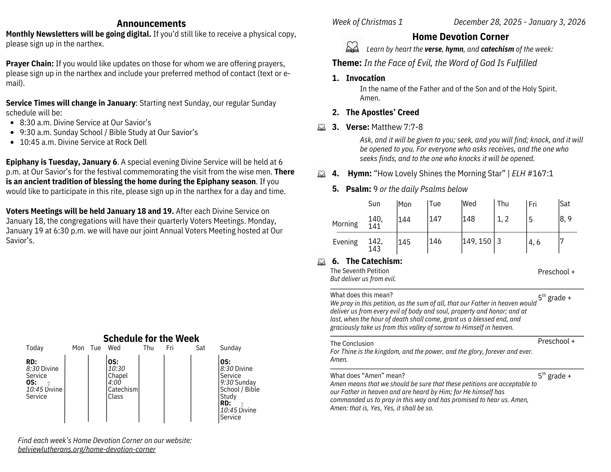 Week of Christmas 1 - December 28, 2025 - January 3, 2026